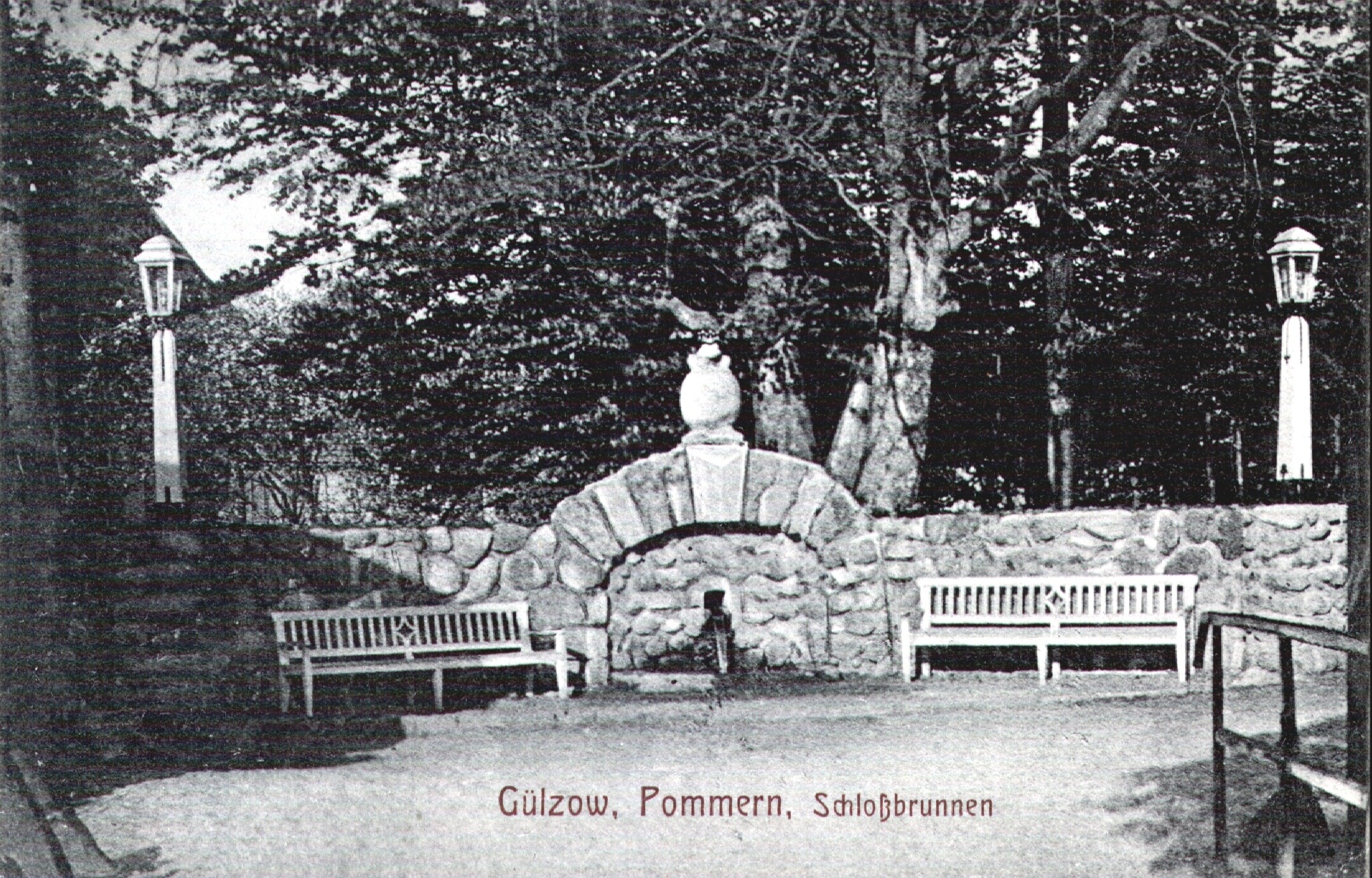 Przed 1910 rokiem studnia zamkowa przy południowym wjeździe do wsi prezentowała się marnie: otoczona spróchniałymi deskami i przykryta daszkiem, nie pasowała do malowniczego sąsiedztwa potoku Müchtenbach i grupy buków. Impulsem do zmian było powołane w 1906 roku Towarzystwo Upiększania, które postawiło sobie za cel stworzenie w tym miejscu reprezentacyjnego ogrodu.
